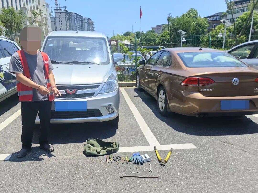 并缴获一个装有手电筒、老虎钳