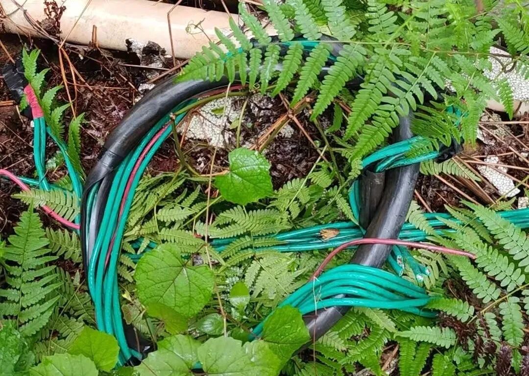 再把剪好的电缆线从围墙丢出